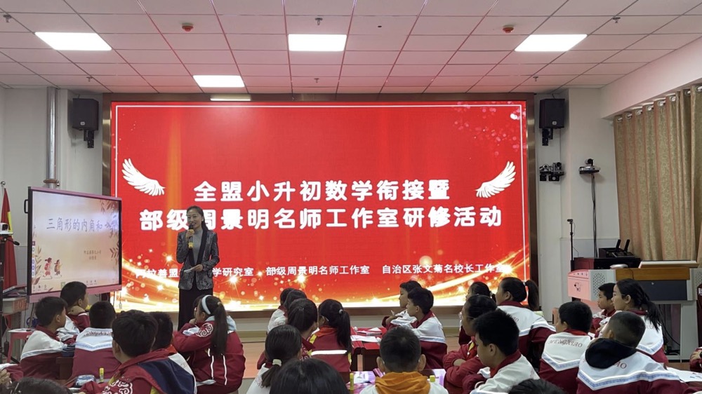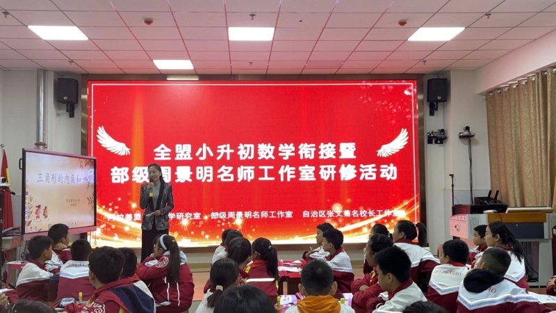 为破解小初数学教学中的思维断层难题,深化衔接教学实践,10月11日,小初数学教学衔接暨周景明名师工作室研修活动在阿拉善盟成功举办。活动采用线上线下同步教研模式,部级周景明名师工作室全体成员、自治区张文菊名校长工作室成员、盟旗数学教研员、阿拉善盟小学、初中数学教师约300人参加培训。