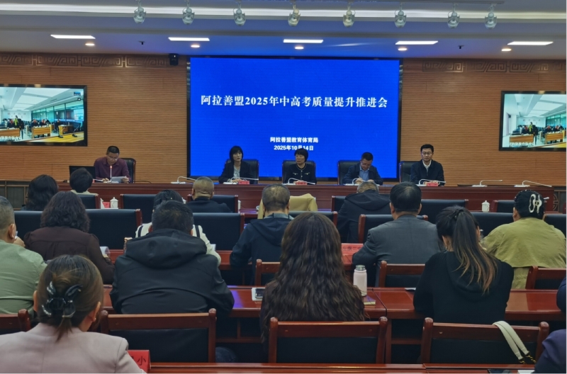 为全面复盘2025年全盟中高考质量,剖析现存问题,科学部署2026年备考复习工作,进一步提升全盟教育教学质量,10月14日,阿拉善盟教育体育局组织召开2025年全盟中高考质量提升推进会。会议以线上线下相结合的方式召开,盟教体局在家领导班子成员及全盟教育系统300余名工作人员参会。