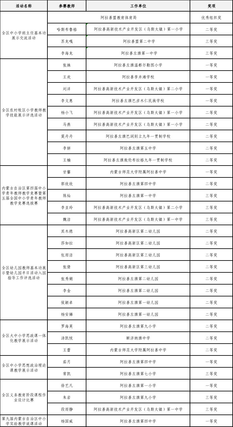 阿拉善盟34名教师在自治区多项专业技能比赛中喜获佳绩